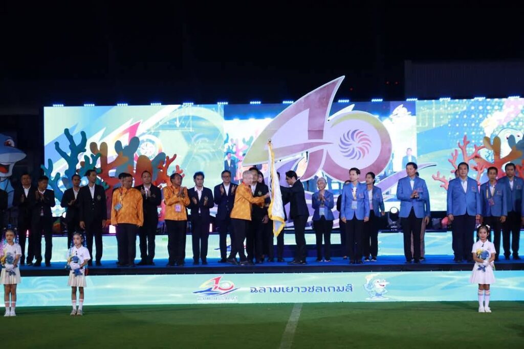 ไฮไลต์สำคัญของงานพิธีปิด คือ การส่งมอบธงสัญลักษณ์การแข่งขันฯ ให้แก่จังหวัดสุราษฎร์ธานี โดยนายธีรุตม์ ศุภวิบูลย์ผล ผู้ว่าราชการจังหวัดสุราษฎร์ธานี ได้มอบหมายให้ นายบันดาล สถิรชวาล รองผู้ว่าราชการจังหวัดสุราษฎร์ธานี เป็นผู้แทนรับมอบ พร้อมการแสดงชุดพิเศษจากเจ้าภาพครั้งต่อไป ที่สะท้อนความพร้อมและศักยภาพของจังหวัดสุราษฎร์ธานีในการเป็นเจ้าภาพจัดการแข่งขันอย่างยิ่งใหญ่